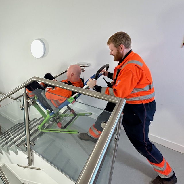 Evacuation chairs are vital pieces of equipment designed to transport people with mobility issues quickly and safely down staircases. Our training ensures your team can operate the chairs correctly, maintain control in high-stress situations, and follow proper safety protocols for both the operator and the casualty.